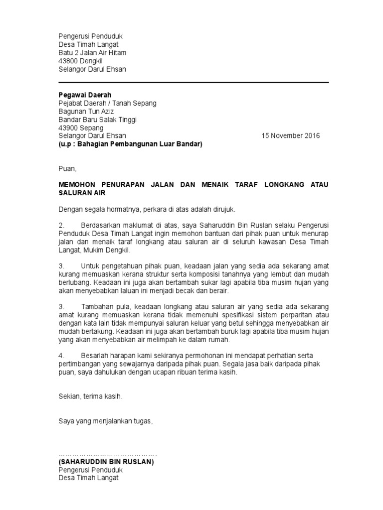 Surat Mohon Menurap Jalan Dan Menaik Taraf Longkang Pdf